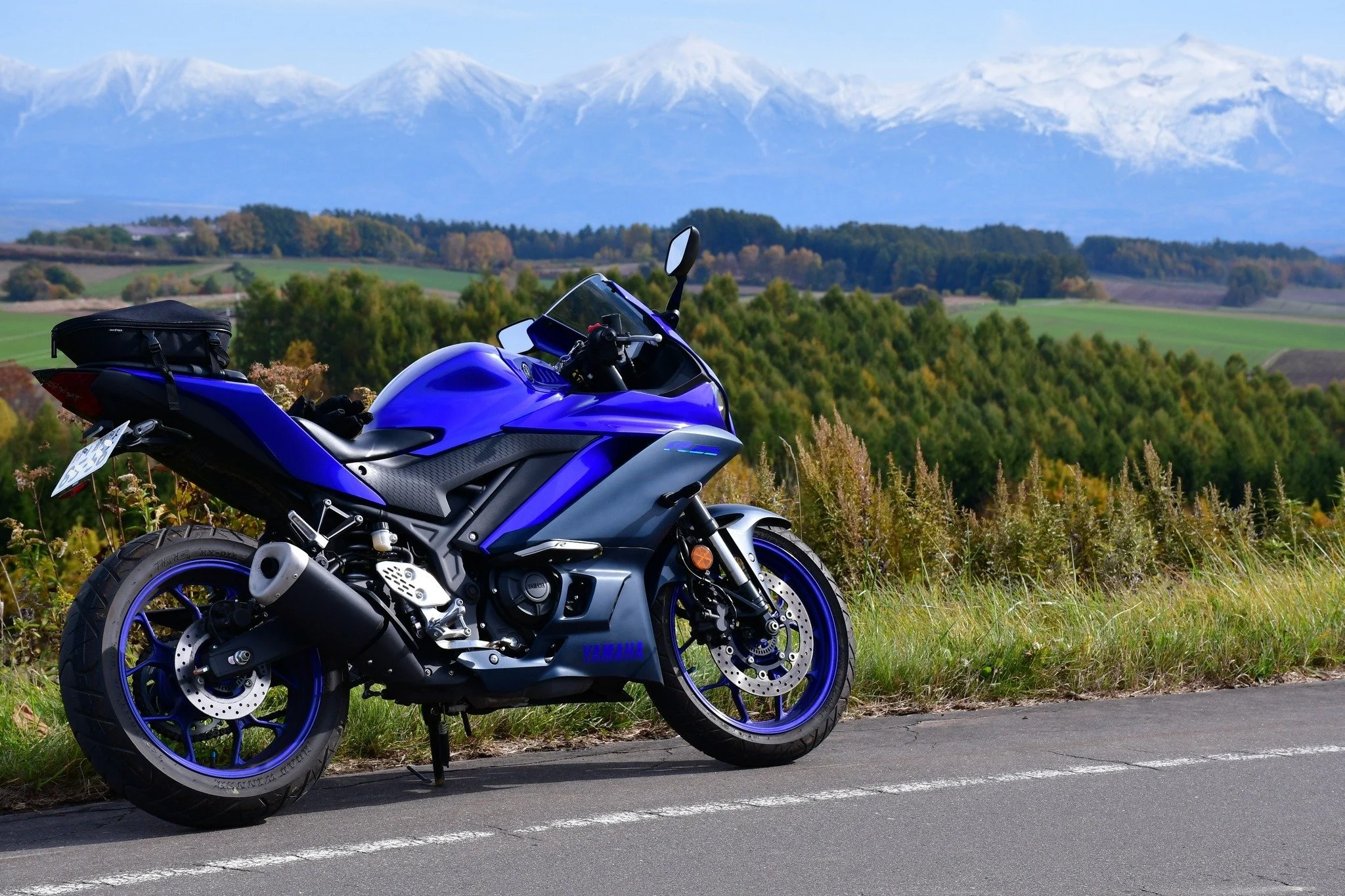 ~丘のまち美瑛 新栄(しんえい)の丘から大雪山連峰をバックに YZF-R25~